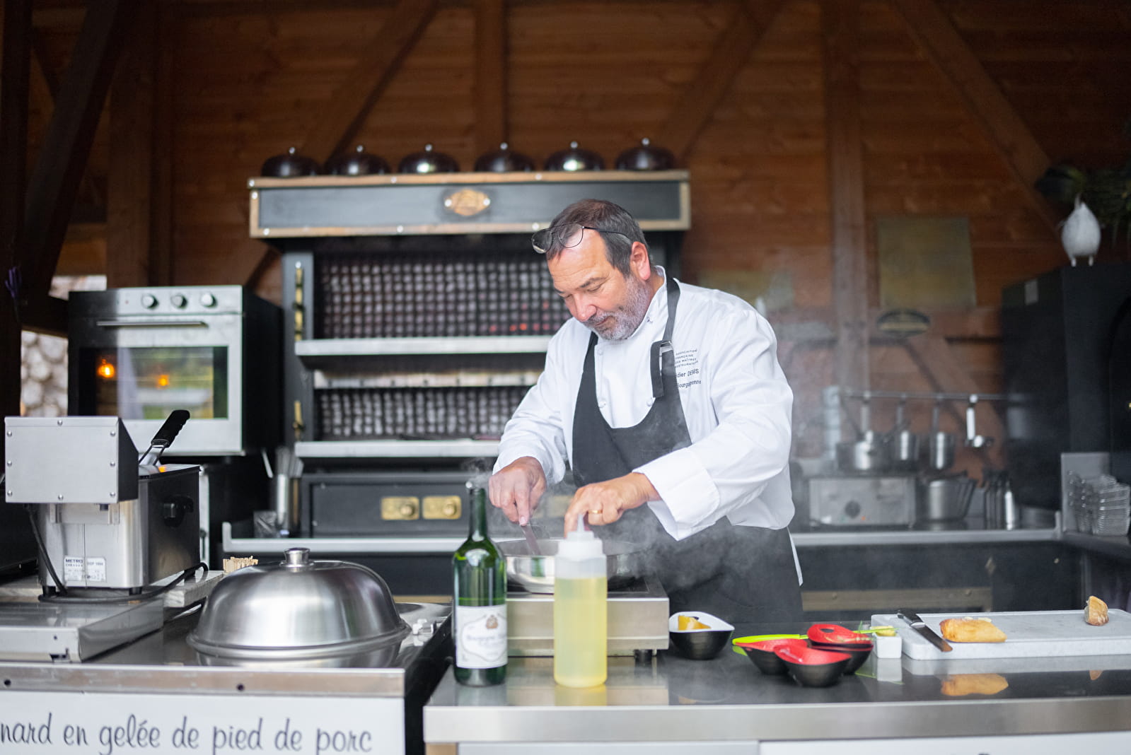 Venez rejoindre Didier Denis aux fourneaux de l'hostellerie bourguignonne et partagez lors d'une journée, les secrets de sa cuisine revisitée, généreuse et toujours inventive inspirée des produits du terroir et de saison. Vous serez accueillis dès 8h45 lors du café d'accueil et ferez la connaissance des autres participants. Vous travaillerez jusqu'à la pause gourmande de midi. Puis, après avoir préparé l'intégralité du repas dégustation (entre 7 à 8 plats), vous partagerez avec la brigade de cuisine un repas convivial agrémenté de bons vins bourguignons tout en retournant en cuisine terminer et dresser chacun des mets du repas.
