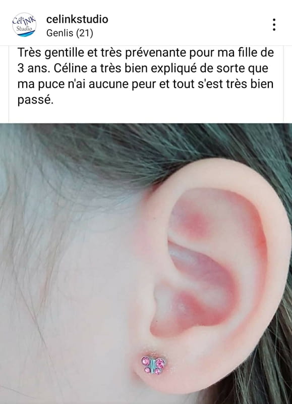 Perçage des lobes enfant à partir de 4 ans. (matériel stérile et à usage unique dans le respect des règles d'hygiène)