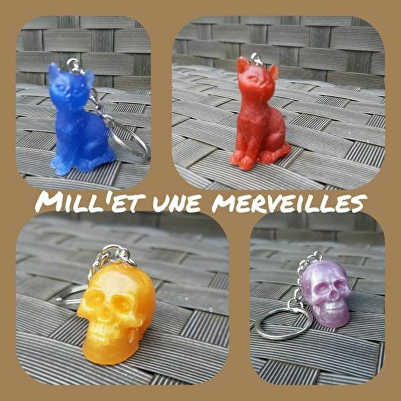 Confection d'objets en résine époxy (porte-clefs et objets de décoration) et de baumes à lèvres naturels.