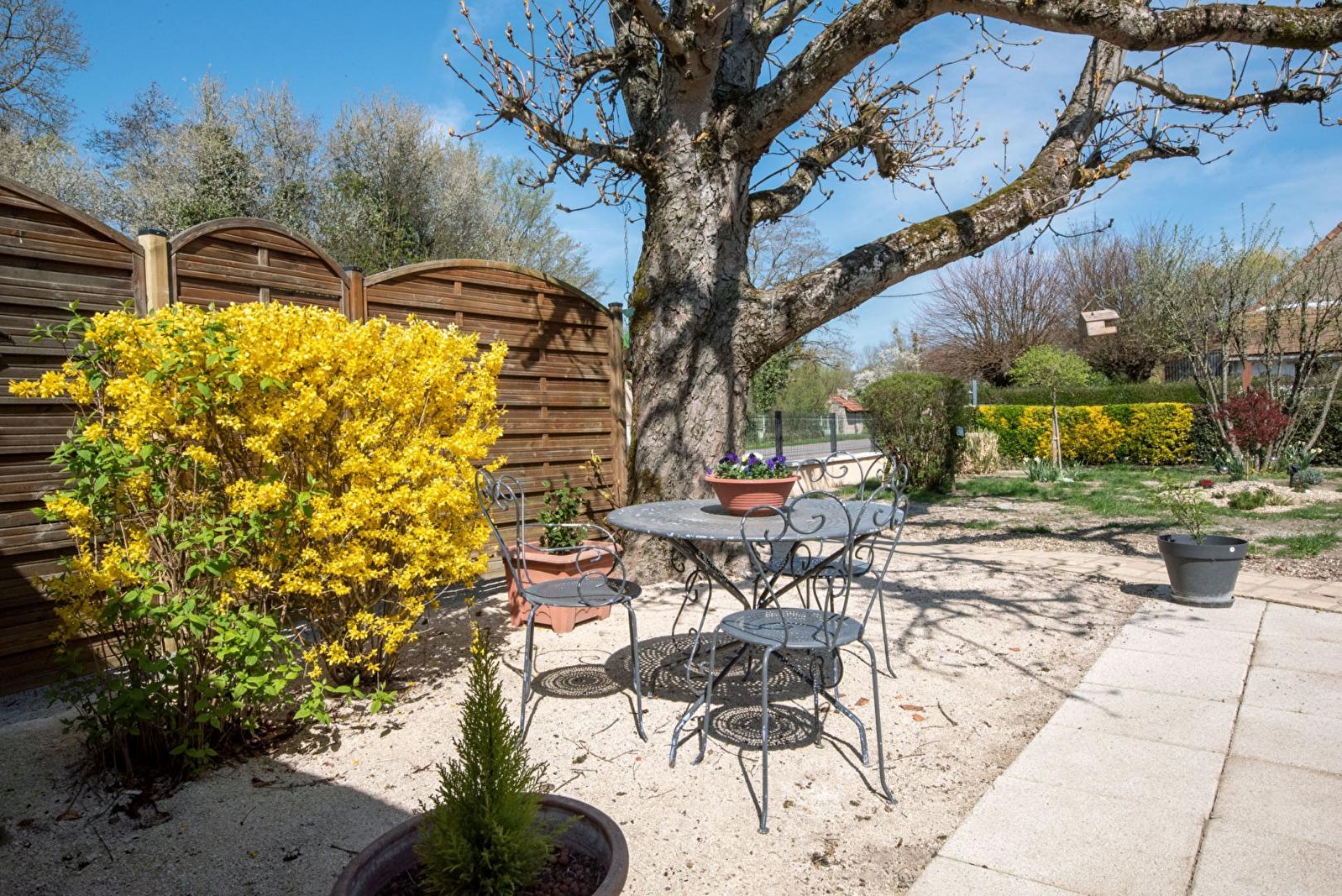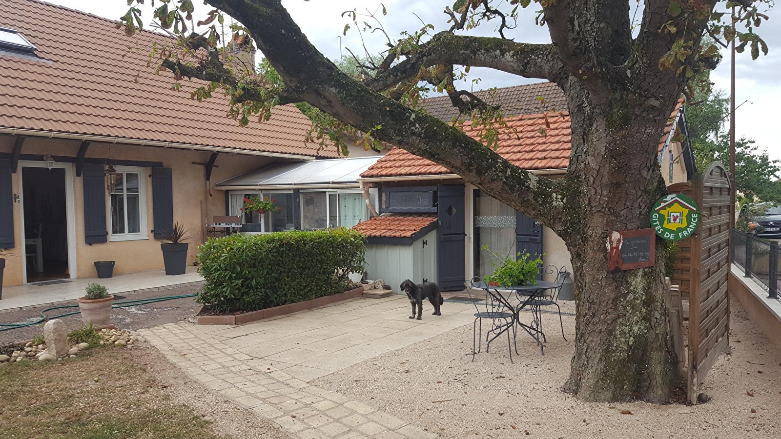 Jean vous accueille au sein d’une atypique villégiature aménagée dans l’esprit d’un "mini appartement d’hôtes" (littérale "maisonnette" totalement indépendante lovée dans une aile de la maison) à l’endroit d’une ancienne dépendance agricole (four à pain) de la ferme bressanne traditionnelle chargée "d’histoire locale" & intégralement restaurée qu’il occupe (jadis café de village qui abritait une salle de danse !). Paisible petit village résidentiel, blotti en pleine campagne agricole bressanne, entre champs & prairies, à l’orée de la vaste forêt domaniale de Pourlans, littéral "poumon vert" sauvage de 660 ha parsemé d’étangs & de chemins pédestres (à parcourir à pied ou VTT), jouxtant la Saône & le Doubs (paradis des kayakistes & pêcheurs, célèbre pour ses silures, sandres ou carpes, doté de plages naturelles), remarquable écosystème protégé en "Zone Natura 2000" (exceptionnelle réserve ornithologique riche de 160 espèces d'oiseaux et de variétés végétales très rares). Apaisant cadre champêtre & naturel environnant, relaxant & reposant. Chambre de bon confort au beau volume. Chaleureux cachet campagnard contemporain. Ambiance douce & dépaysante. Large terrasse ombragée, blottie sous un marronnier, ouverte sur un agréable jardin privatif clos soigneusement végétalisé & fleuri. Accès à une pièce de vie privative jouxtant la chambre (cuisine complète, espace repas & détente). Possibilité de visiter le poulailler & les chevaux du propriétaire parqués à l’arrière de la maison.