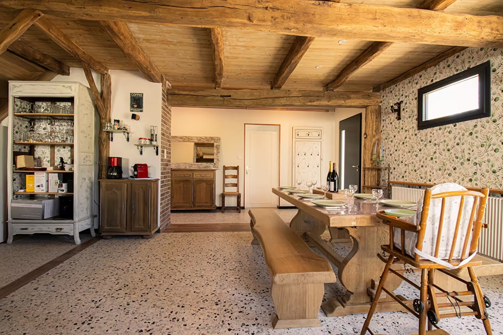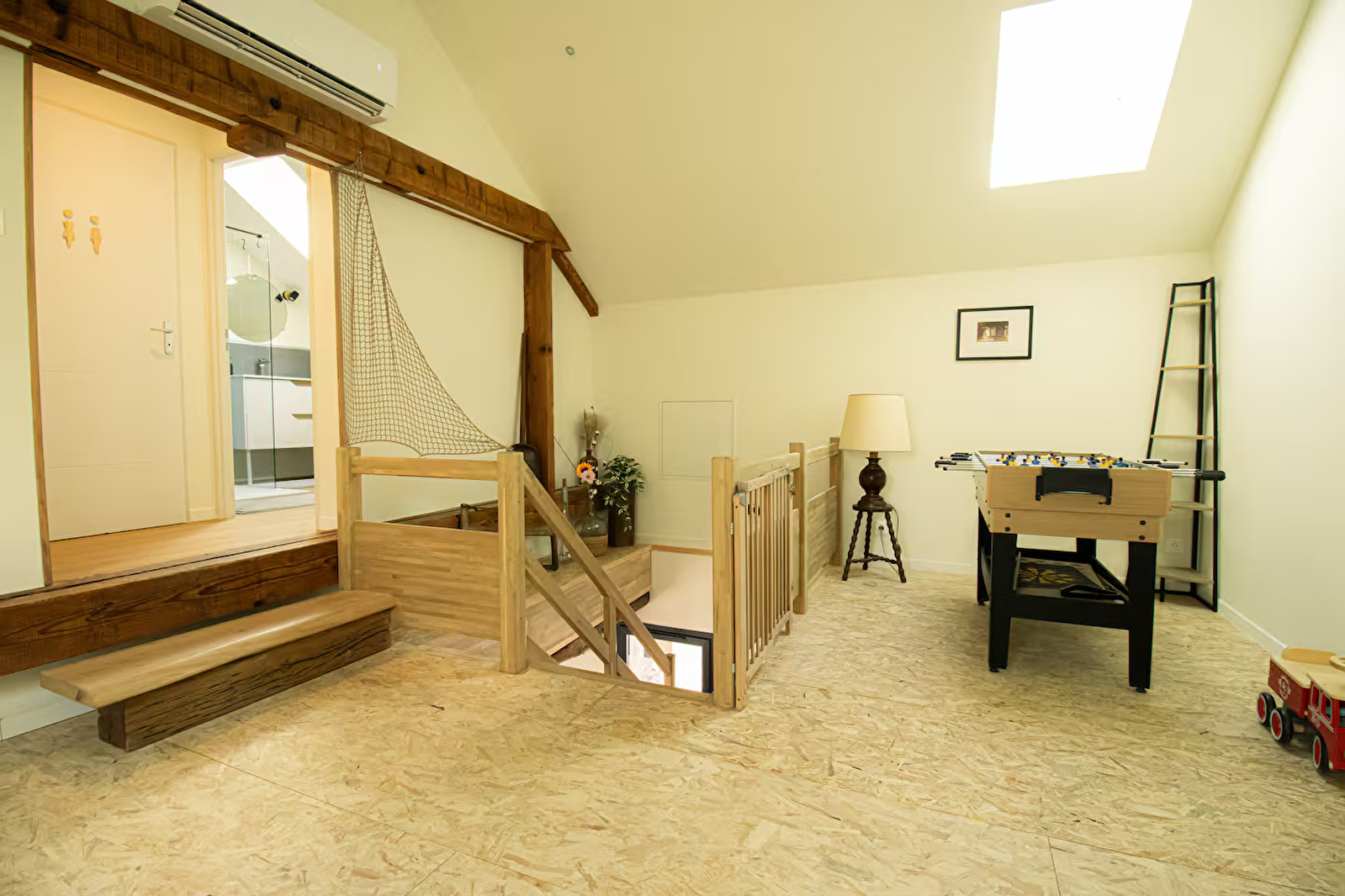 Pensé pour les séjours en famille ou entre amis, il offre de grands espaces de convivialité, une salle de jeux et un terrain extérieur clos pour profiter pleinement de la nature environnante et du calme rural.