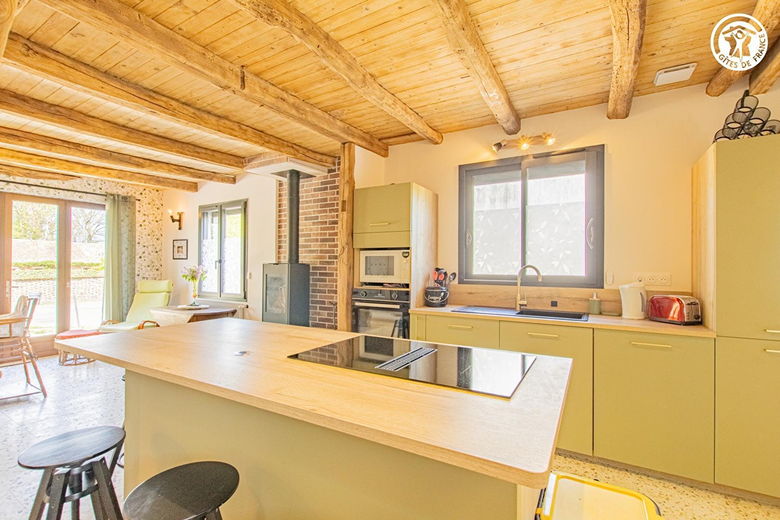 Authentique fermette traditionnelle du XIXe chargée d'histoire "familiale" soigneusement restaurée, nichée au calme en bordure de ruelle à deux pas d'un citystade, au cœur d'un paisible petit village typique de la douce campagne bressanne. Lové sur l'ancienne "voie romaine", blotti à l'orée de la vaste forêt domaniale de Pourlans ("poumon vert" de 660 ha parsemé d'étangs & de chemins pédestres, à parcourir à pied ou VTT), voisinant les rives de la Saône & du Doubs (paradis des kayakistes & pêcheurs, célèbre pour ses silures, sandres ou carpes, doté de plages naturelles, remarquable écosystème protégé en "Zone Natura 2000" pour son exceptionnelle réserve ornithologique riche de 160 espèces d'oiseaux & variétés végétales très rares) au creux d'une douce plaine agricole, Clux-Villeneuve profite d'un apaisant écrin champêtre & naturel préservé conjuguant champs de cultures, prairies, étangs & vastes forêts sauvages. Spacieux gîte de très bon confort. Vaste pièce de vie de 50m². Chaleureux cachet campagnard aux accents contemporains "twisté" par quelques douces touches "vintage" (dont un très beau sol en "terrazzo" côté séjour) & l'âme du bâti d'origine (charpente, superbes poutres & piliers en bois). Beaucoup de charme & caractère. Ambiance cosy & douillette. Équipement complet de qualité. Vaste terrasse abritée ouverte sur un agréable jardin clos de 500m².