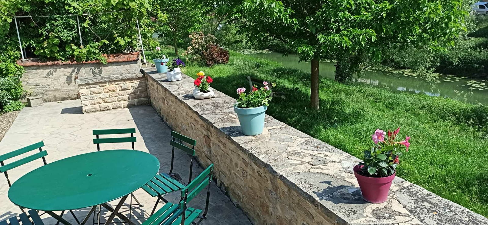 Détendez vous dans ce logement unique et tranquille de 4 chambres avec jardin au bord de l'eau et un accès direct à la rivière. Jardin, potager, barbecue, terrasse...on se croirait à la maison. Un garage pour vélos, mobylettes et motos est à disposition des clients.