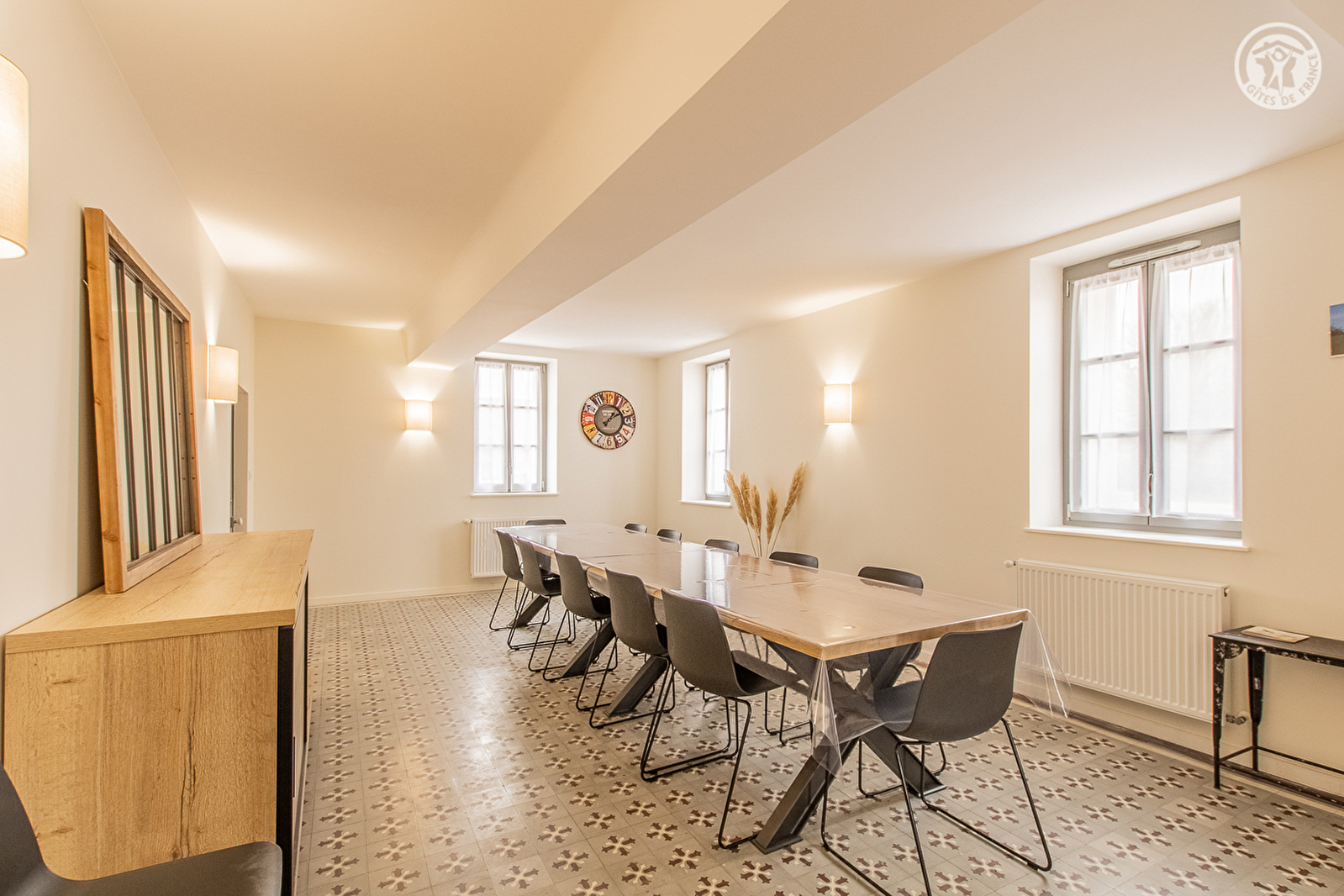 Authentique ferme traditionnelle du 19ème siècle, élégamment restaurée & revisitée en confortable villégiature par la commune de St-Didier-en-Bresse, nichée en plein cœur de ce paisible petit bourg rural, agricole & résidentiel, disposant d'une aire de jeux enfants (balançoire, toboggan, jeux sur ressorts, panier de basket, table de ping-pong…) et de terrains de pétanque, voisinant le gîte. Calme & tranquillité en pleine campagne bressane, lové au creux d'un bel environnement agricole & naturel préservé, successions de douces prairies, pâtures & bocages, parsemés de bucoliques rivières & étangs poissonneux, à deux pas de plusieurs vastes forêts sauvages (à parcourir lors de reposantes balades à pied ou VTT), en toute proximité des rives du Doubs (véritable paradis des kayakistes & site de pêche ultra réputé pour ses célèbres silures, sandres ou carpes) remarquable écosystème pour partie classé en "Zone Natura 2000" pour son exceptionnelle réserve ornithologique riche de 160 espèces et ses variétés végétales très rares (parmi les nombreux espaces naturels protégés de ce type, tous proches, qui composent le territoire). Spacieux gîte de très bon confort. Cachet contemporain soigné sublimé par la subtile conservation des riches traces du passé (ravissants carreaux de ciment, portes moulurées, manteau de cheminée…). Ambiance zen & reposante. Double terrasse exposée & ombragée (dont une en partie abritée). Agréable grand terrain privatif comprenant une prairie dotée d'un verger fruitier (pommiers, cerisiers, mirabelliers…).