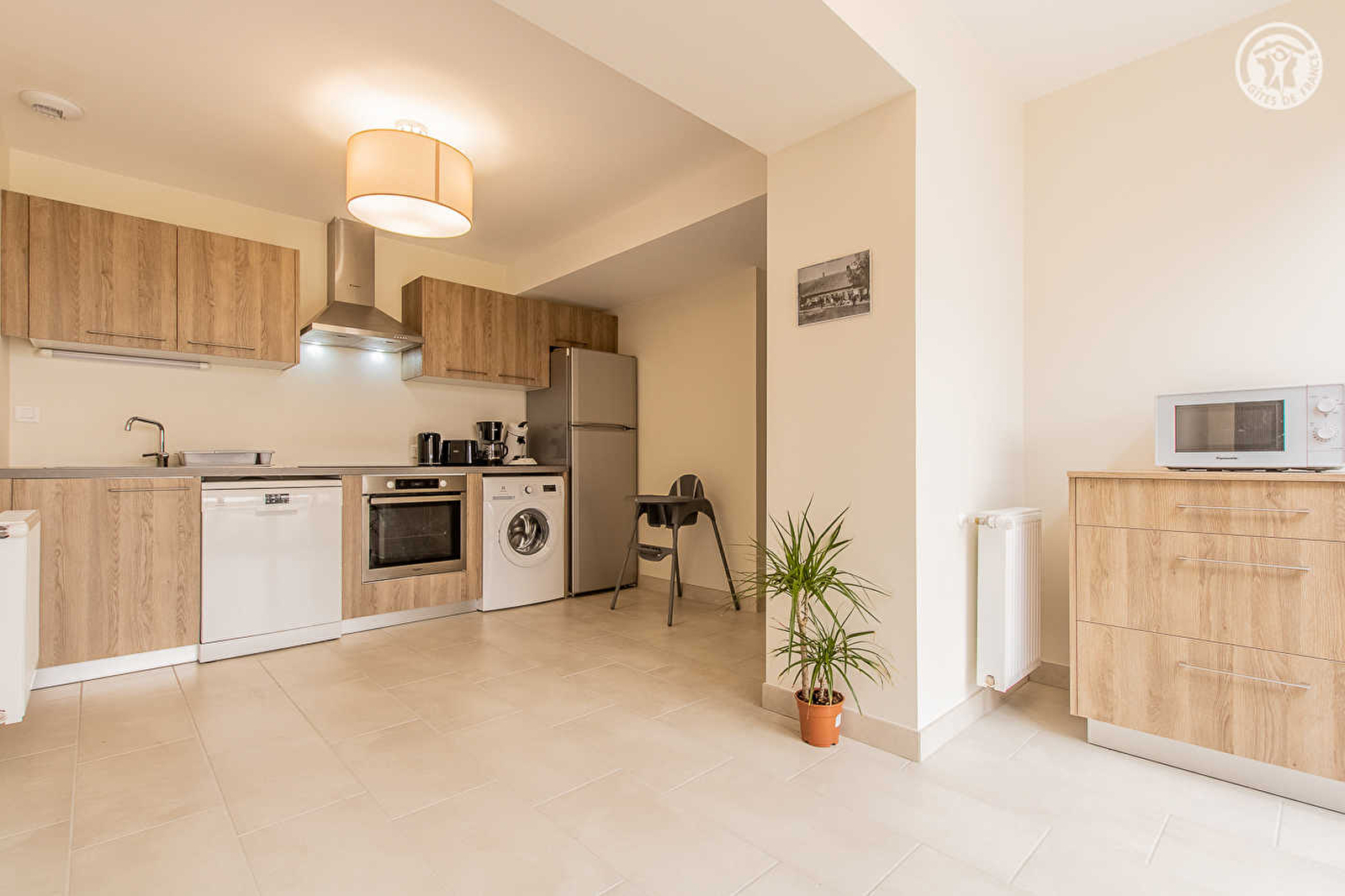 Composition : Maison individuelle. Wifi. Chauffage central gaz. Rdc : cuisine, séjour, salon, chambre PMR (lit 2 p. 160x200cm), salle d'eau PMR (douche), Wc indépendant PMR. 1er étage : 4 chambres (lit 2 p. 160x200cm / lit 2 p. 160x200cm / 2 lits 1 p. 90x200cm / 4 lits 1 p. 90x200cm dont 2 superposés), 2 salles d'eau (douches), Wc indépendants. Terrain + double terrasse (une en partie abritée) + parking privés. Supermarché 6 km. Commodités 9 km.