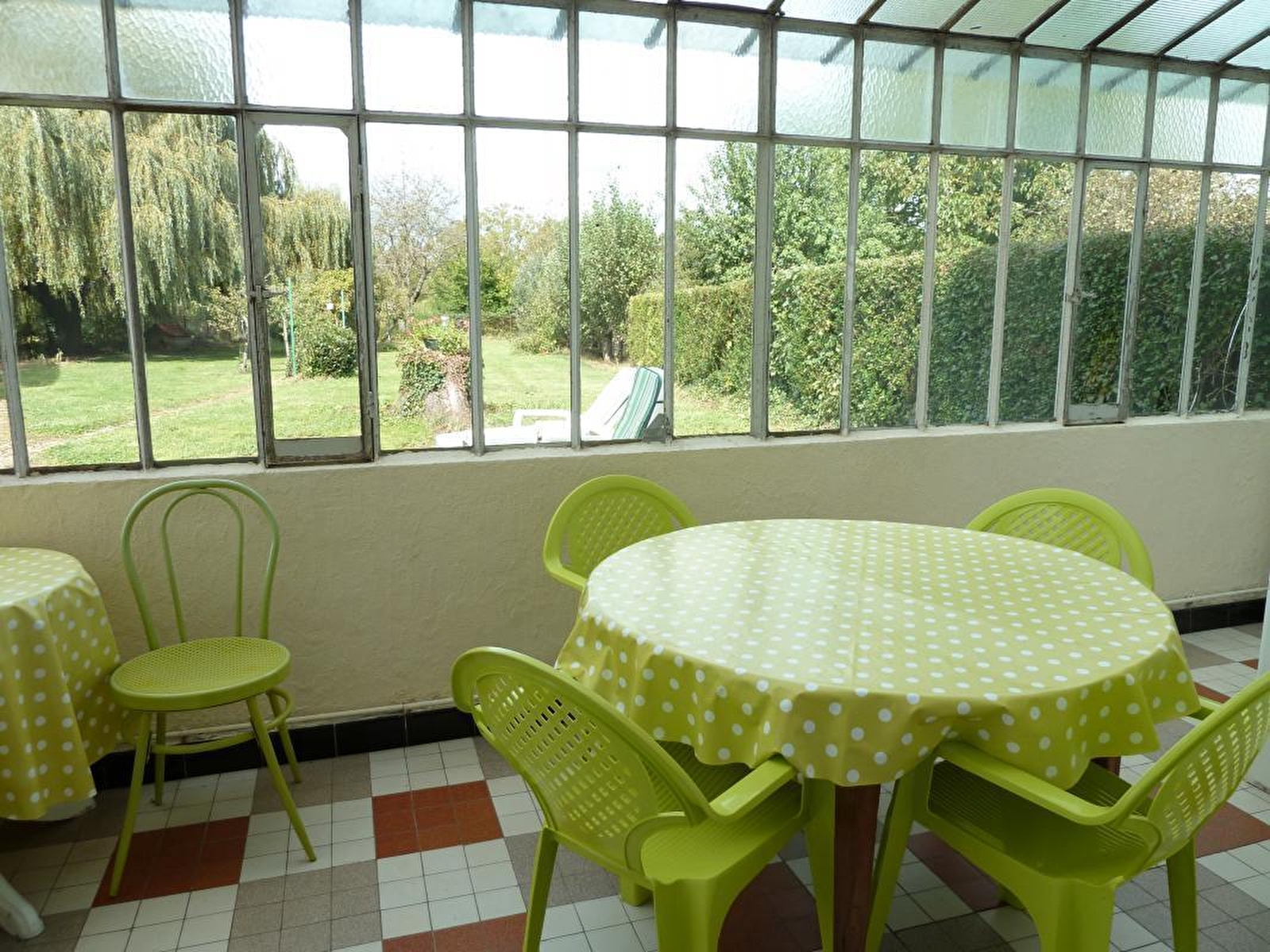 Composition : Maison individuelle avec dépendance (buanderie/cuisine d'été). Wifi (fibre). Chauffage central fioul. Rdc : cuisine, séjour-salon, salle d'eau (douche/Wc), sde (douche). 1er étage : 4 chambres (3 comprenant 1 lit 2 p. 140x190cm / 2 lits 1 p. 90x190cm), Wc indépendant. Double terrasse dont une sous véranda. Terrain clos (500m²) sur terrain privé de 2 ha. Parking privé (abri couvert). Toutes commodités 10 km.
