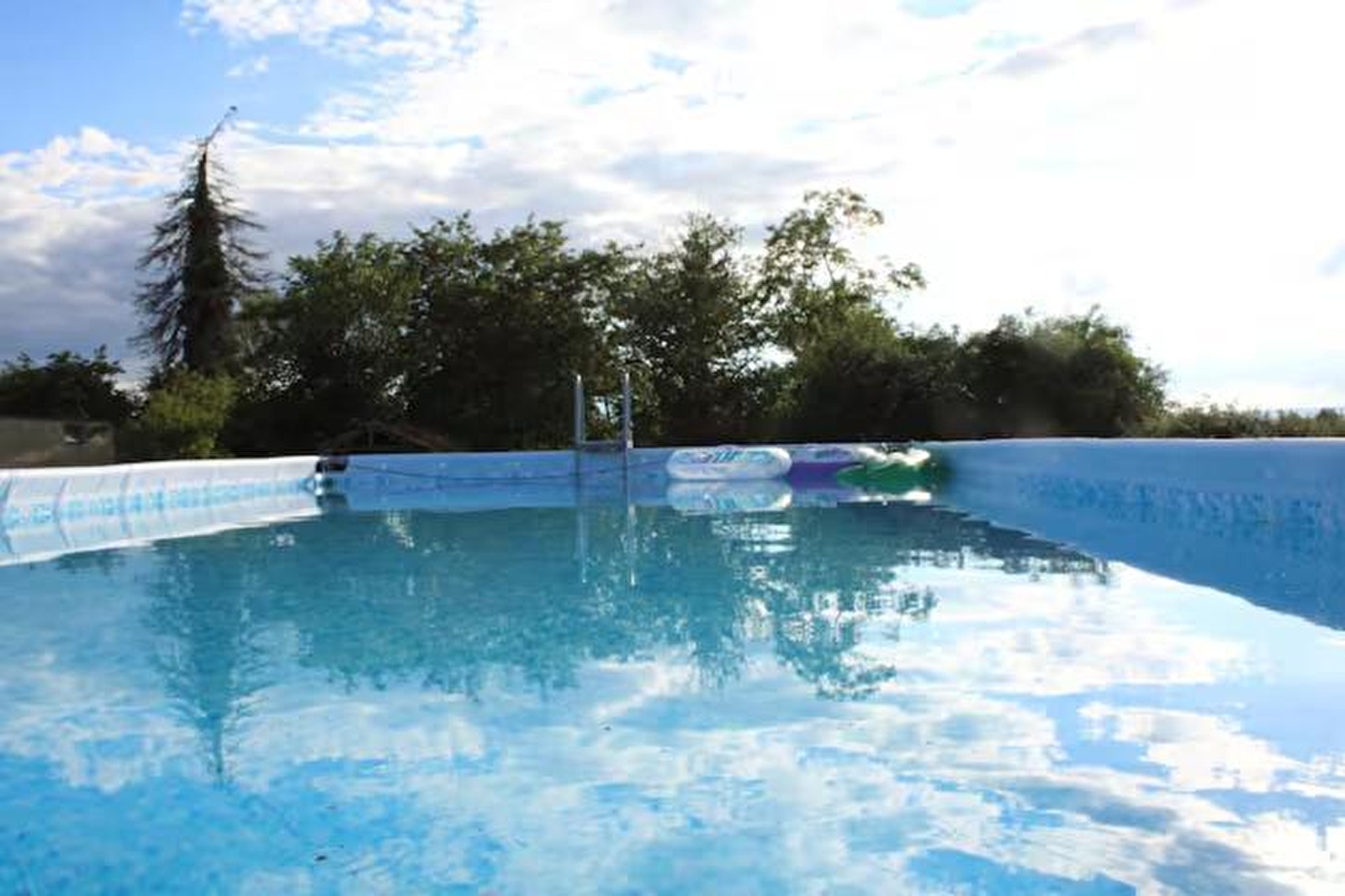 Nous vous proposons des moments de "coolitudes" avec une grande piscine de 10 X 5, un trampoline pour les enfants, une terrasse avec 2 salons de jardin, 1 salon pour manger et l'autre avec banquettes et table basse, plancha pour les grillades, différents transats dans le verger, table de pique - nique en bois, verger avec ses arbres fruitiers.