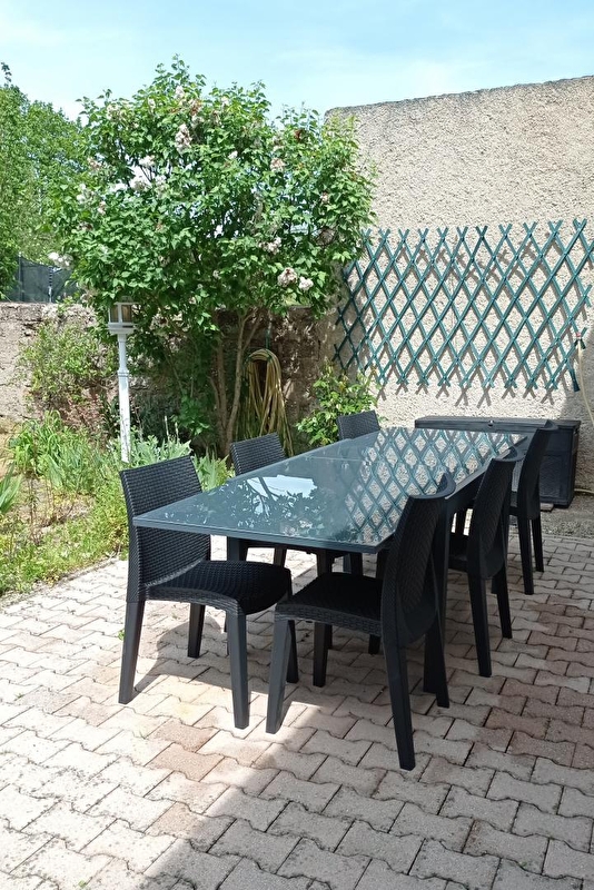 Composition : Maison de village mitoyenne sur une grande propriété close abritant également une maison louée à l'année (appartenant à la propriétaire). Wifi (fibre). Chauffage électrique + poêle à bois. Climatisation dans le séjour. Rdc : cuisine, séjour-salon, salle d'eau (douche), Wc indépendant, buanderie. 1er étage : 3 chambres (lit 2 p. 140x190cm / 2 lits 1 p. 90x200cm / lit 2 p. 160x200cm), salle d'eau (douche), Wc indépendant, espace bureau. Double terrasse (dont une petite abritée) + jardin clos (400m²) + parking privatifs. Commodités 7 km. Gare 10 km.