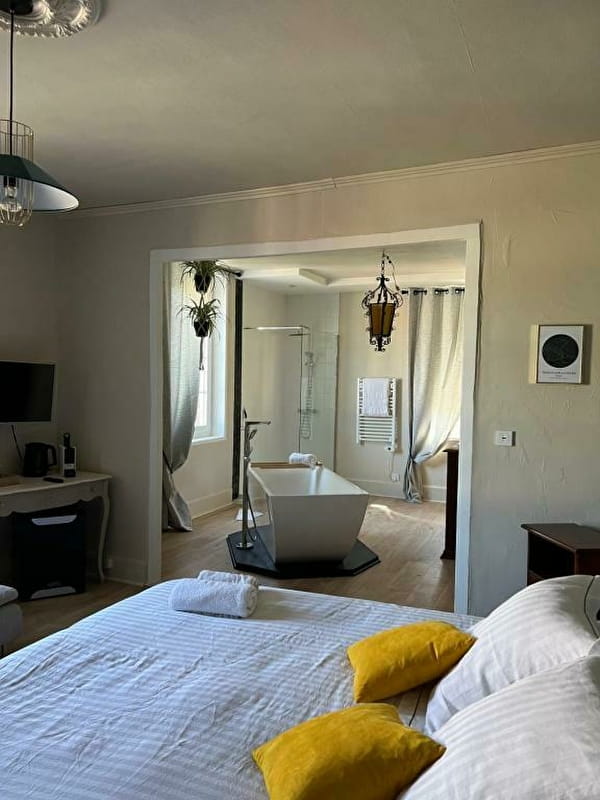 La chambre d'hôtes l'Escale accueille ses clients depuis juin 2022 au cœur de Verdun-Ciel, dans une grande bâtisse entièrement rénovée et décorée avec goût. Anciennement occupée par un antiquaire, les propriétaires actuels ont décidé de préserver le charme de la bâtisse en conservant des objets de décoration et des meubles de style Louis XVI et en les intégrant à des éléments plus modernes. Son grand jardin, habillé d’un espace cocooning où l’on retrouve notamment un jacuzzi, permet aux couples de profiter d’un séjour calme et rêveur.