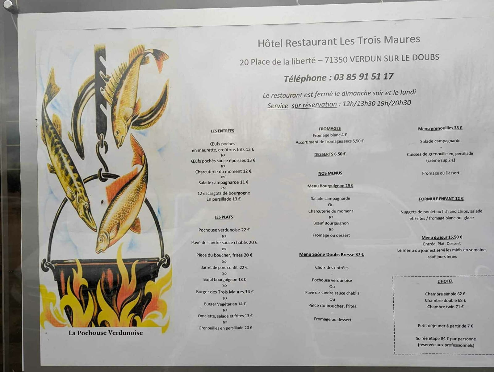 - A la carte : Tarif unique de 22€ (Pôchouse Verdunoise)