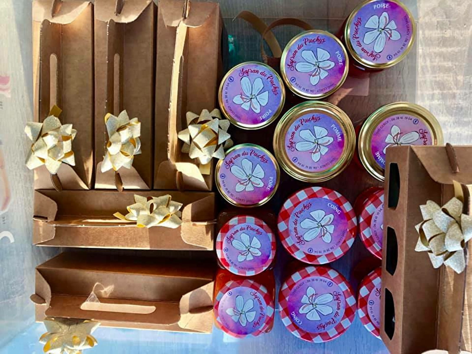 Découvrez aux grée des saisons les différents produits dérivés des fleurs de Safran. Confitures, gelée, filaments, vous trouverez cette grande variété de produits dans les points de vente du territoire.